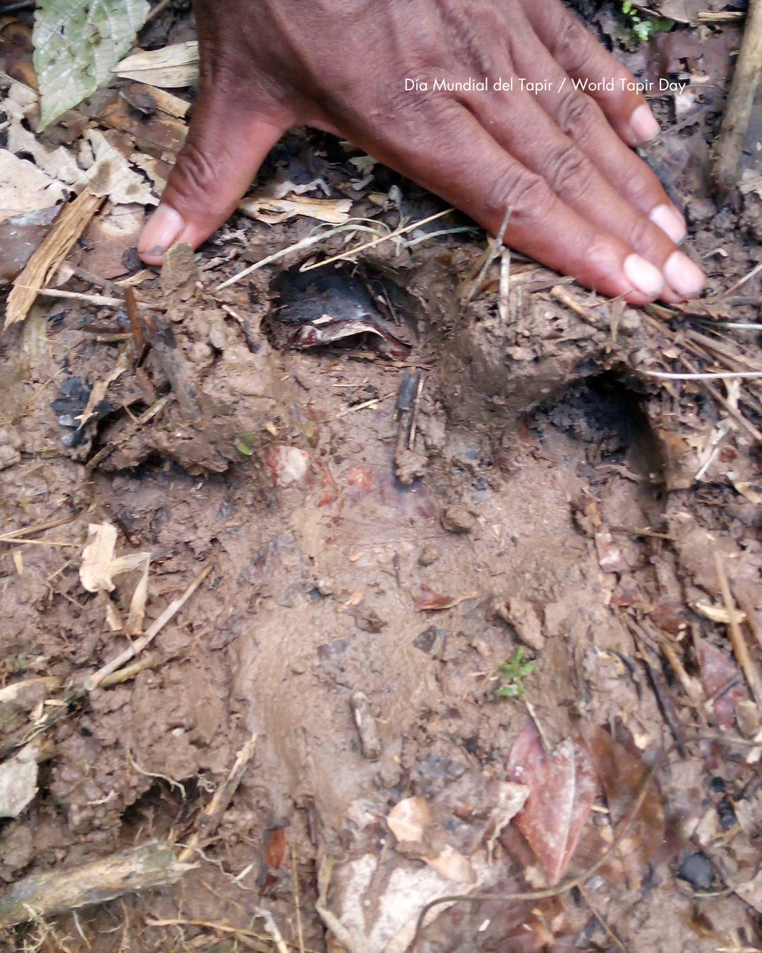 Huellas de tapir y heces detectadas en la Reserva del Rio Plátano en Honduras. Fotos por Bianca Padilla.