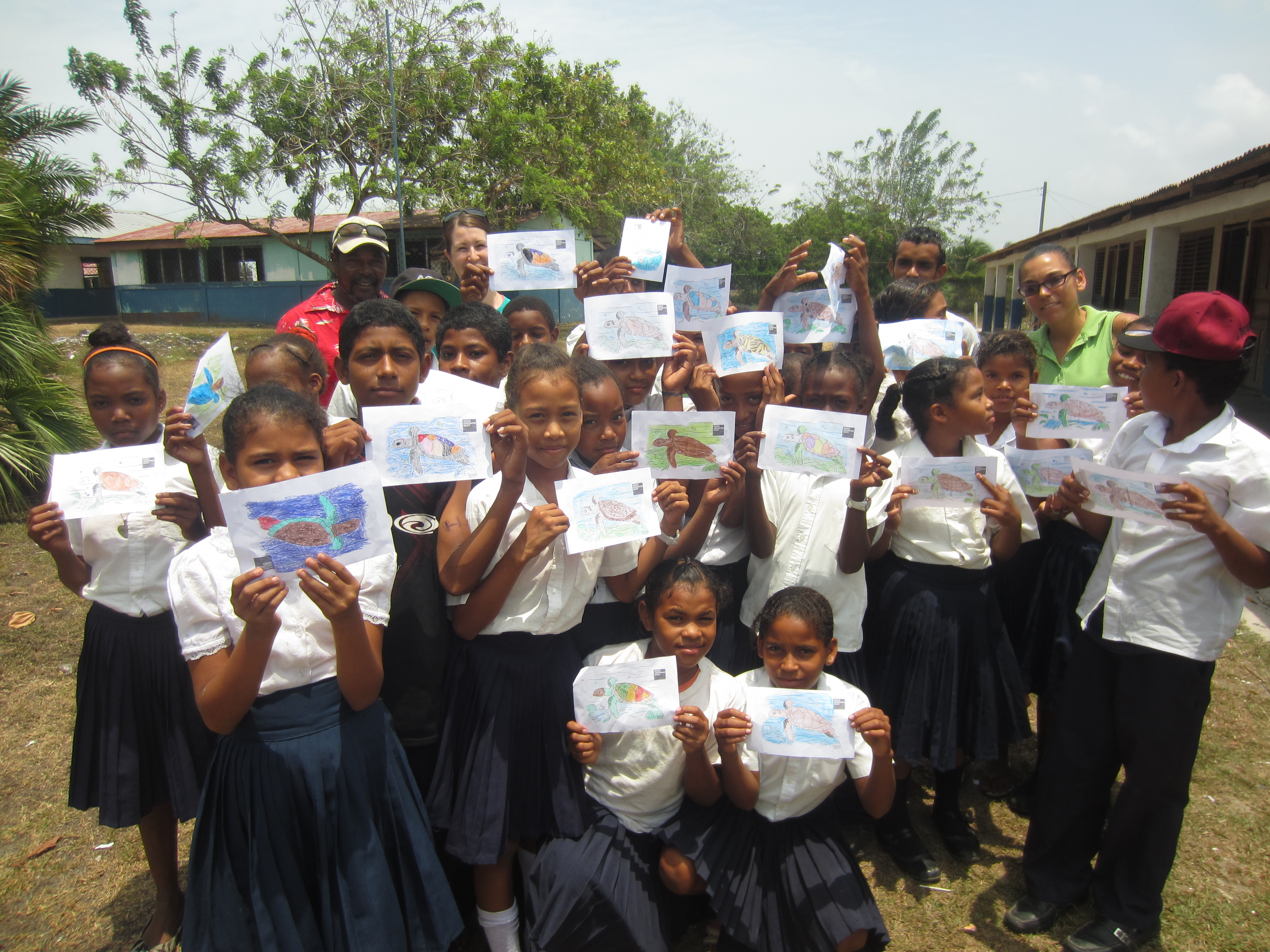¡WCS ha estado activa en las aulas! La coordinadora del Proyecto Carey, Laura Irvine, y el supervisor de campo del Proyecto Carey, William McCoy, en colaboración con Geri Mezzoni y Ryan Mintz del Cuerpo de Paz Nicaragua, visitaron las aulas de 3º a 9º grado en la Escuela Primaria Bula Lightburn (Laguna de Perlas), la Academia de Excelencia de Laguna de Perlas y la Escuela Primaria Andreas Carlos (Haulover), con el objetivo de hablar con los niños sobre la importancia de la conservación de las tortugas marinas.